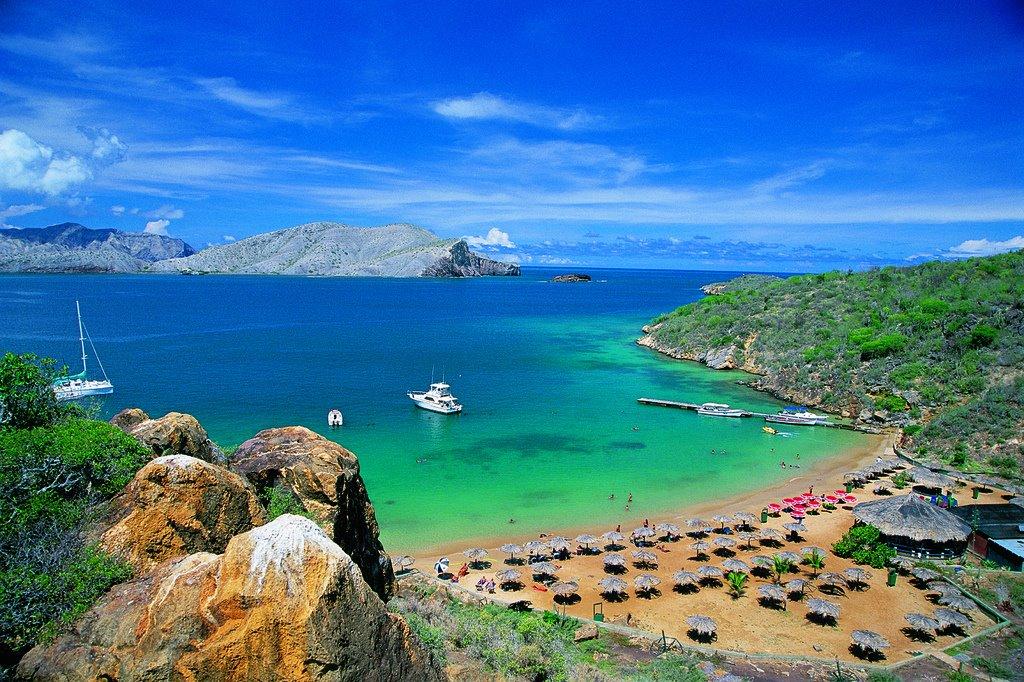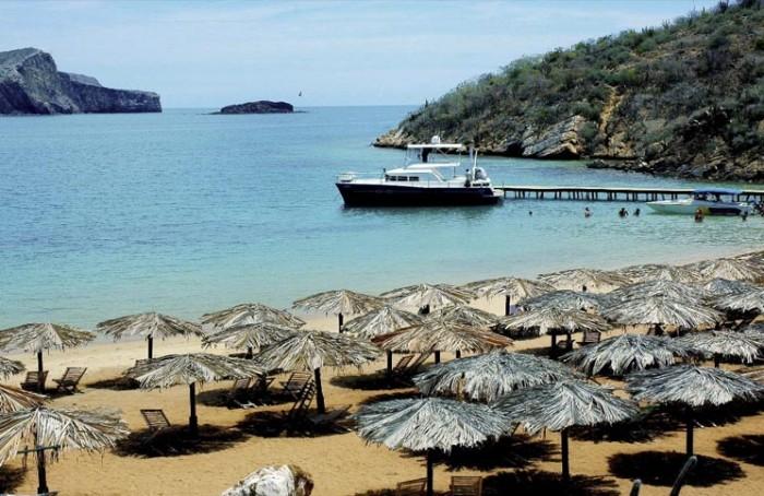 Playa El Saco, una de las playas más visitadas del Parque Mochima. Con sus diferentes tonalidades de azules y arena blanca, El Saco es una de las playas más atractivas para visitar en Mochima. Cuenta con servicios de toldos y Sillas, sin embargo es una playa pequeña por lo que se recomienda llegar temprano. Para llegar a ella debes ir necesariamente en peñero o lancha privada.